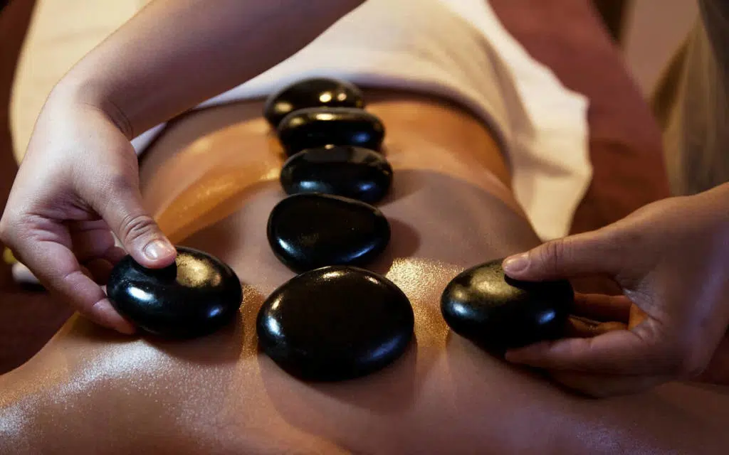 Используются разогретые камни, которые расслабляют мышцы, улучшают кровообращение и снимают стресс.